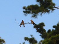 仕方がないので、松の木で休んでいるところを撮ってみた。想像以上につまらん写真に。